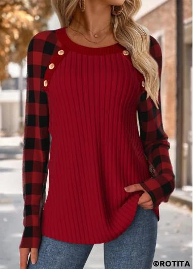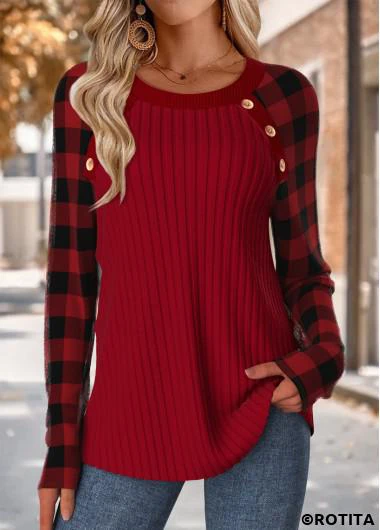 Function:Tummy Coverage Package Contents:1 X T Shirt Color:Wine Red Printing Design:Plaid,Geometric, Print Placement Will Vary Clothing Length:Tunic Sleeve's Length:Long Sleeve Neckline:Round Neck Sleeve Style:Raglan Sleeve Placket Style:Pull On/Pullover Style:Casual Composition:95% Polyester 5% Spandex Washing Instructions:Hand Wash/Machine Wash Selling Point:Rib,Button,Patchwork