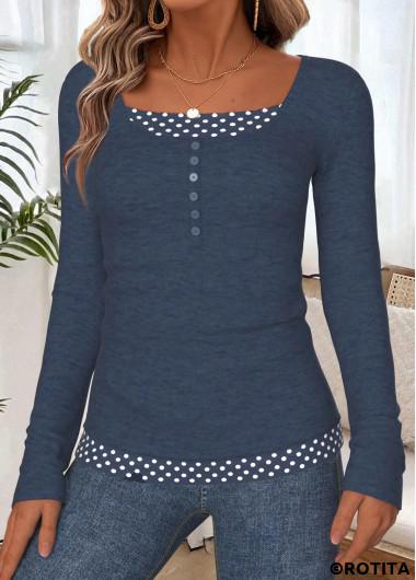 New In ROTITA Tummy Coverage Polka Dot Navy Round Neck T Shirt