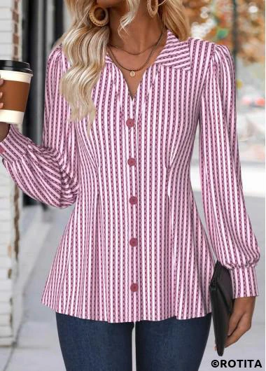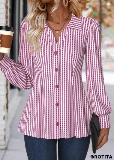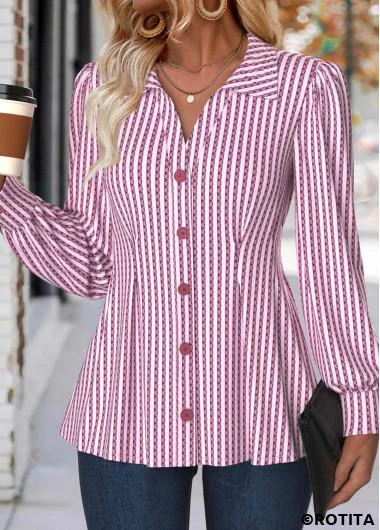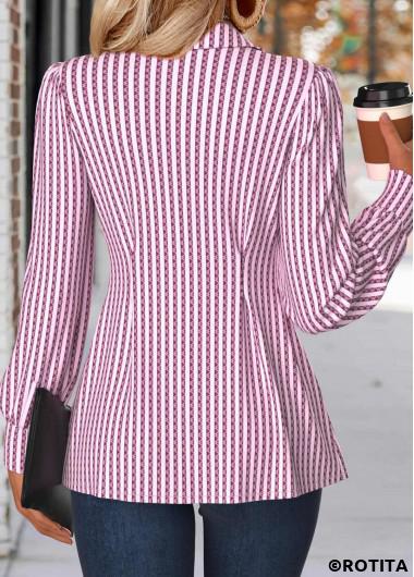 Home > Tops > Shirts/ ROTITA Tummy Coverage Striped Light Pink Turn Down Collar Shirt