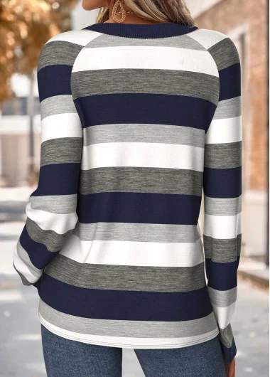 ROTITA Tummy Coverage Striped Navy Round Neck T Shirt