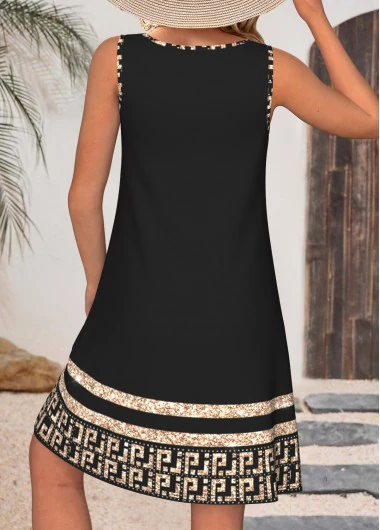 Home > Dresses/ ROTITA Tummy Coverage Tribal Print Black Round Neck Sleeveless Dress