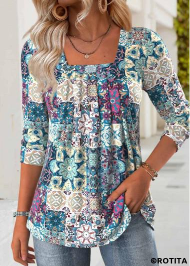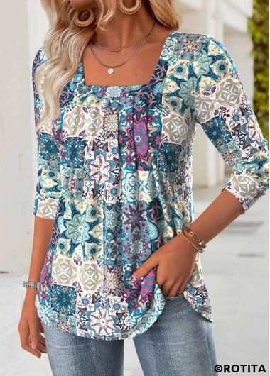 Home > Tops > Tees&T-shirts/ ROTITA Tummy Coverage Tribal Print Multi Color T Shirt