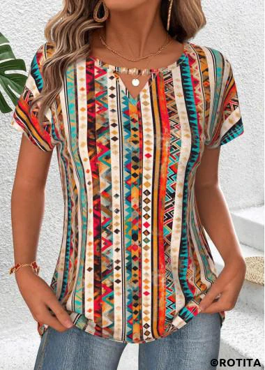 Home > Tops > Tees&T-shirts/ ROTITA Tummy Coverage Tribal Print Multi Color T Shirt