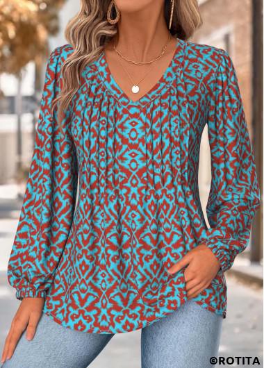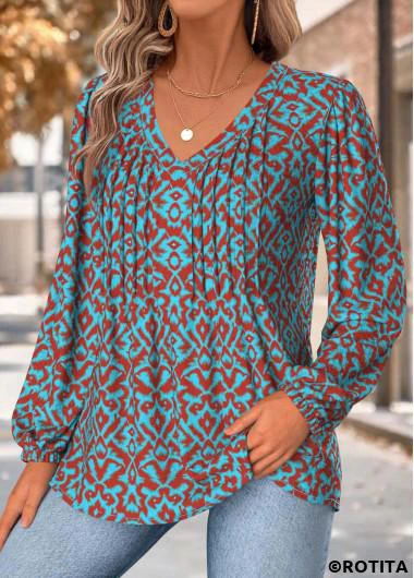 Home > Tops > Blouses/ ROTITA Tummy Coverage Tribal Print Neon Blue V Neck Blouse