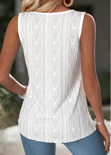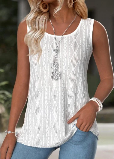 New In ROTITA Tummy Coverage White Round Neck Sleeveless Tank Top