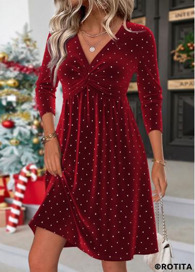 Home > Dresses/ ROTITA Tummy Coverage Wine Red Short V Neck Dress