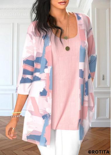 Sale ROTITA Graffiti Print Light Pink Cardigan and Tank Top