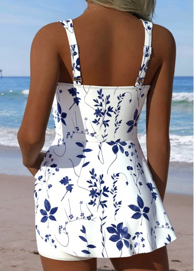 Home > Swimwear > Tankinis > Tankini Sets/ ROTITA White Tummy Coverage Floral Print Mid Waisted Tankini Set