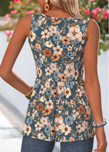 Home > Tops > Tank Tops & Camis/ ROTITA Wrap Floral Print Navy Round Neck Sleeveless Tank Top