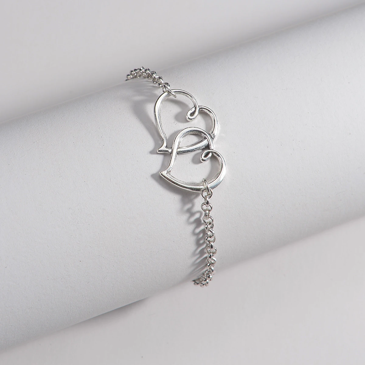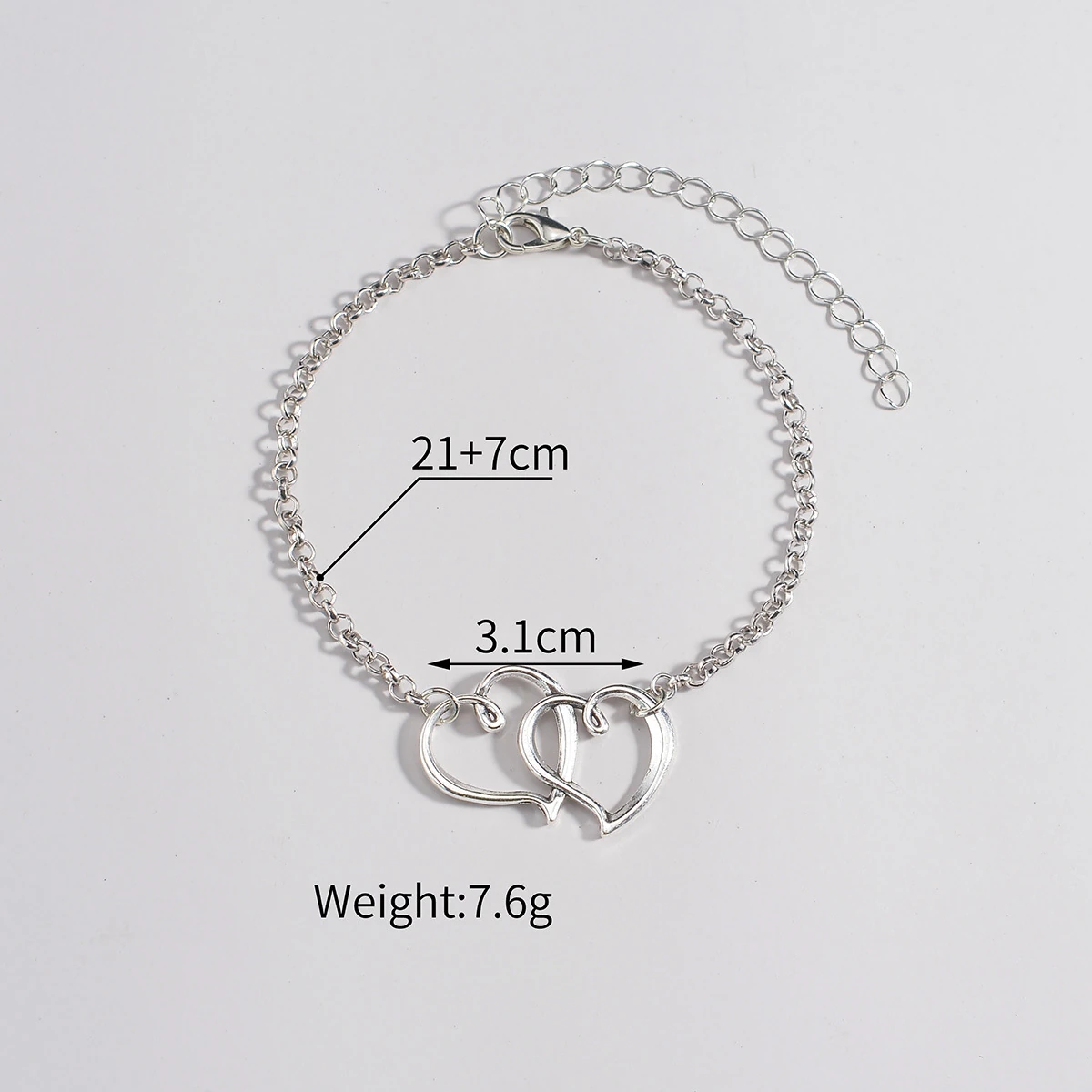 Silver Color Heart Alloy Detail Anklet