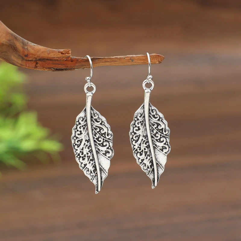 Home > Jewelry > Earrings/ Silver Color Leaf Alloy Detail Earrings