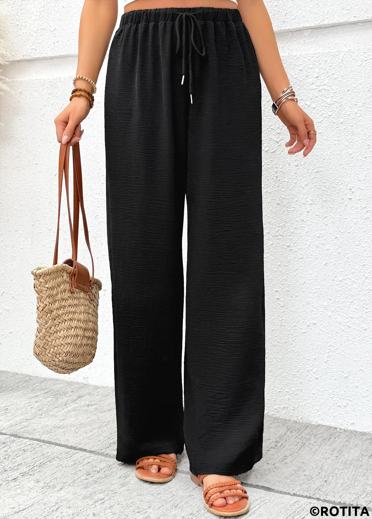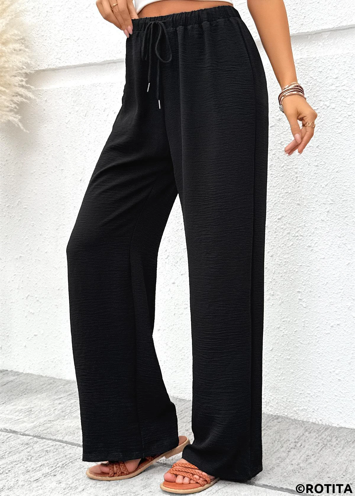 Soft Black Wide Leg Elastic Waist High Waisted Pants