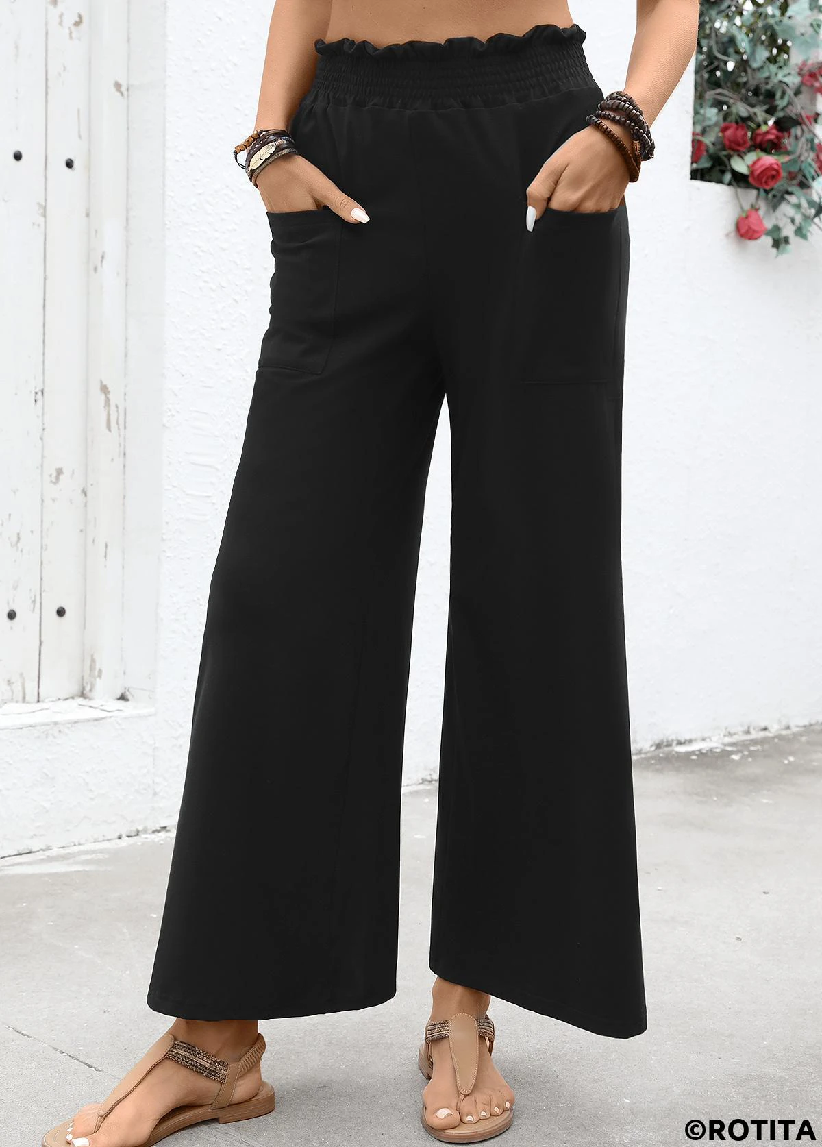 New In Soft Black Wide Leg Elastic Waist High Waisted Pants