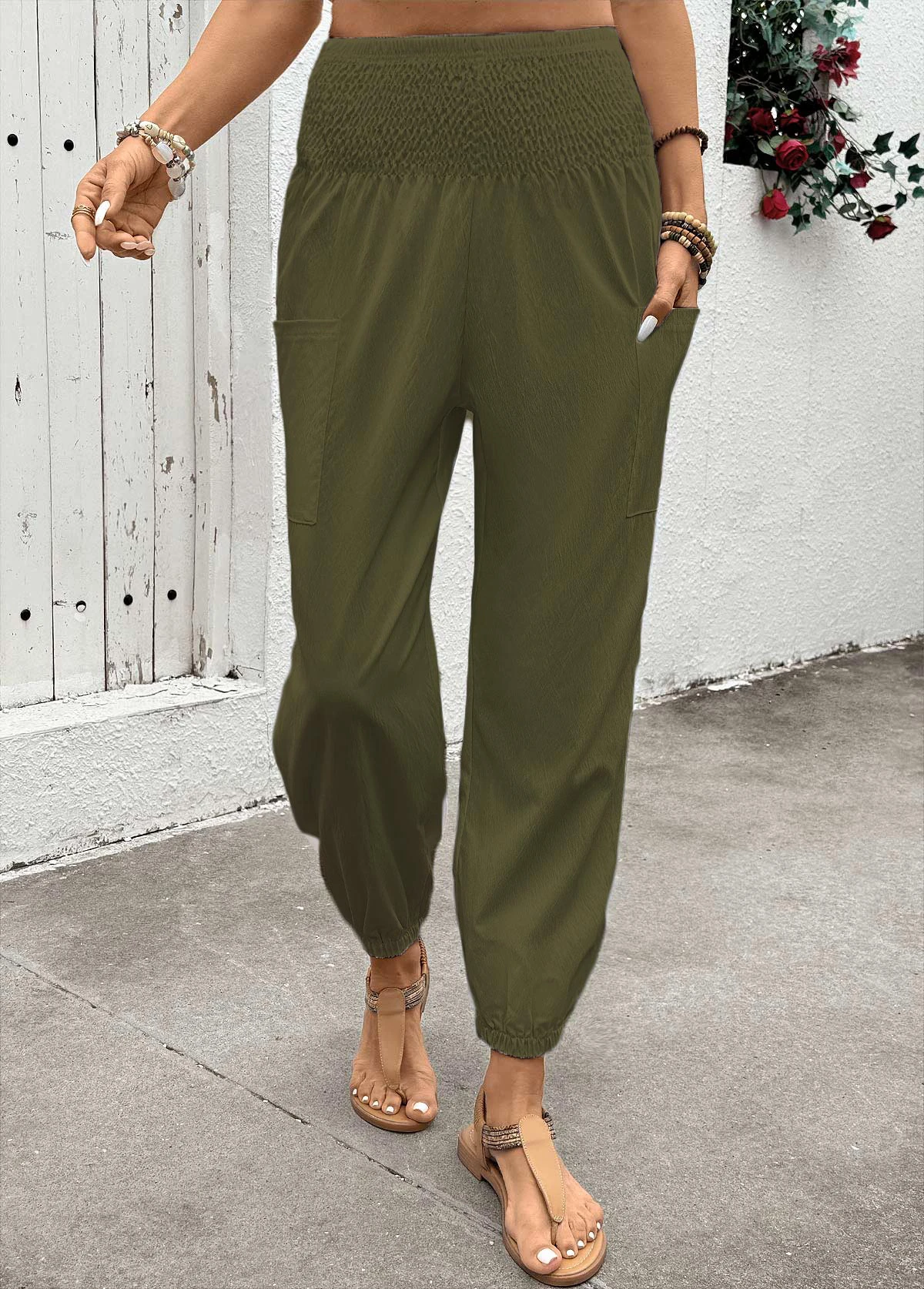 Home > Bottoms > Pants/ Soft Olive Green Jogger Elastic Waist High Waisted Pants