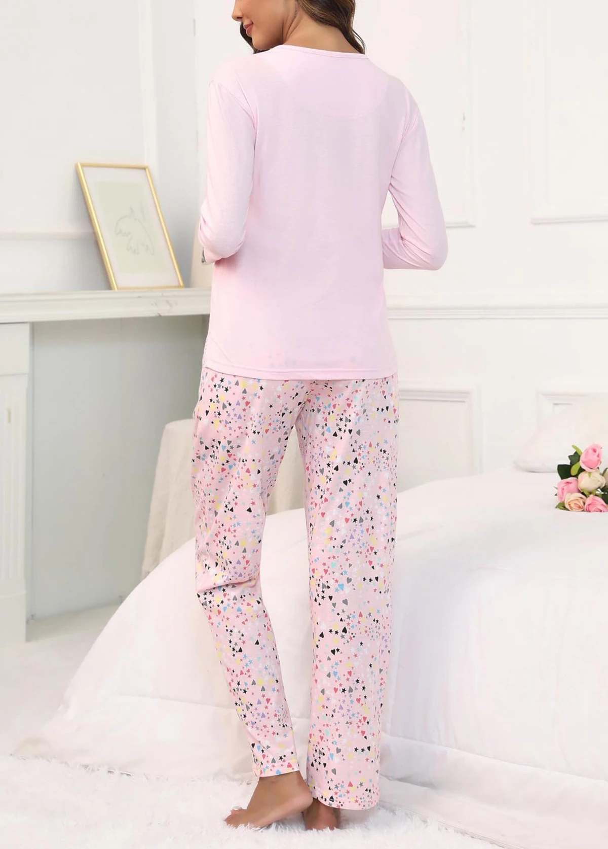 Home > Loungewear > Loungewear Sets/ Star Print Light Pink Lounge Top and Pants