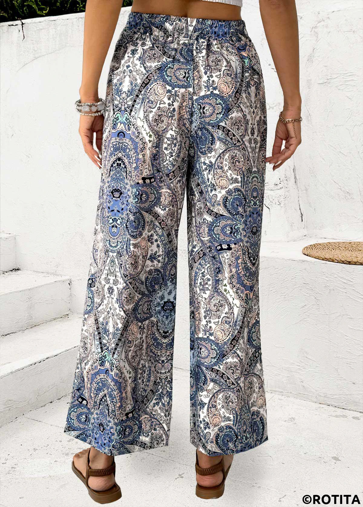 Home > Bottoms > Pants/ Tribal Print Multi Color Straight Leg Elastic Waist Pants