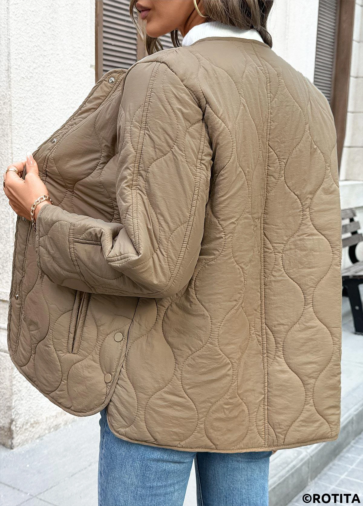 Tummy Coverage Dark Camel Round Neck Long Sleeve Coat