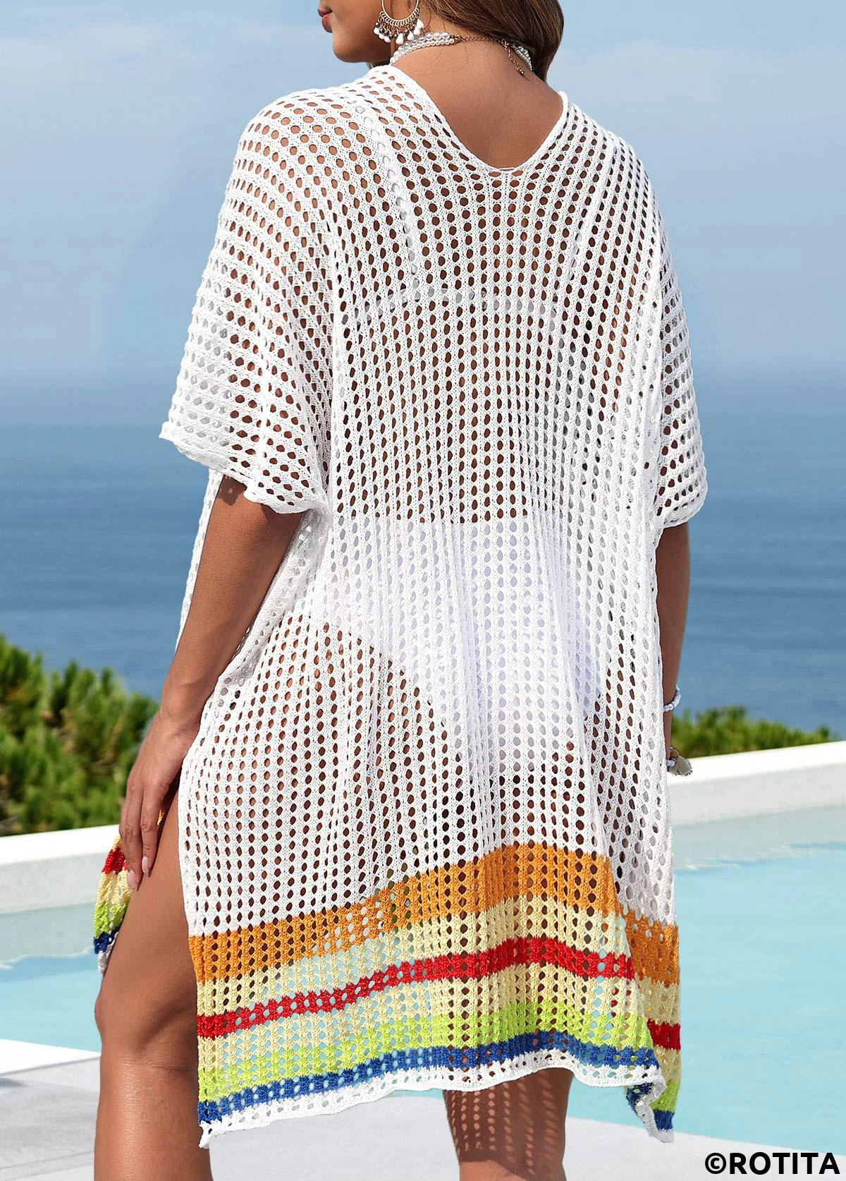 Home > Swimwear > Cover ups/ White Short Sleeve Striped Cover Up
