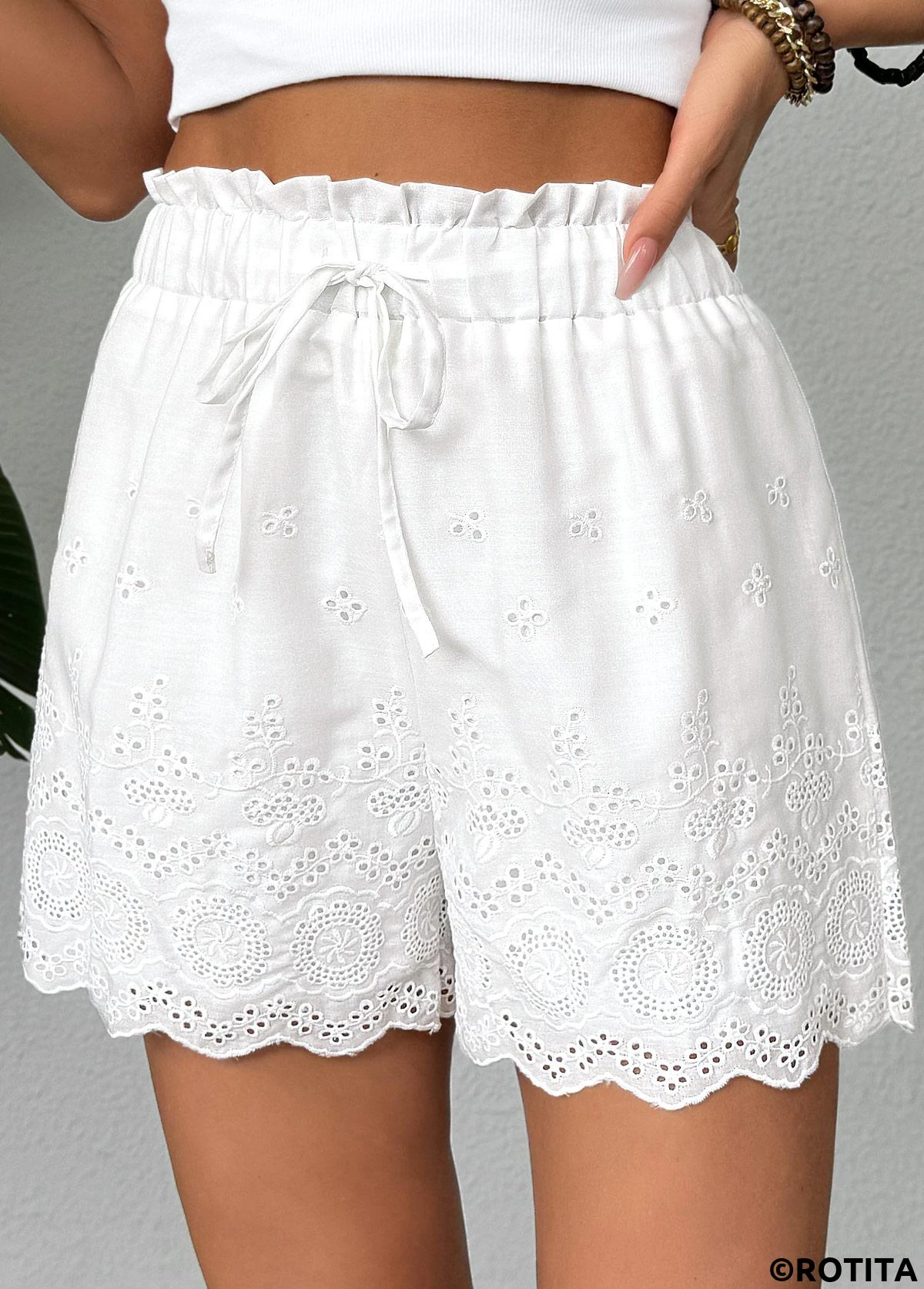 Sale White Straight Leg Elastic Waist Mid Waisted Shorts
